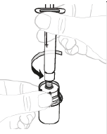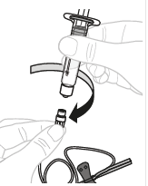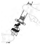 Sett stempelstangen (C) inn i den 3 ml sprøyten (B). Skru stempelstangen med klokken til den er godt festet.
