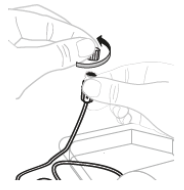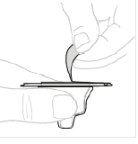 Fjern kanylen. Bøy over kanylebeskyttelsen, den skal smekkes på plass.