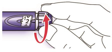 Trykk ikke på injeksjonsknappen mens du vrir den, for da vil det komme ut insulin.
