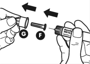 Ta av den ytre nålehetten (G). Behold den til senere. Du vil trenge den etter injeksjonen når du skal kaste pennen.