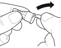 Først holder du pennen slik at nålen peker oppover. For å fjerne luftbobler fra systemet knipser du forsiktig på siden av pennen slik at eksisterende luftbobler stiger opp til toppen.