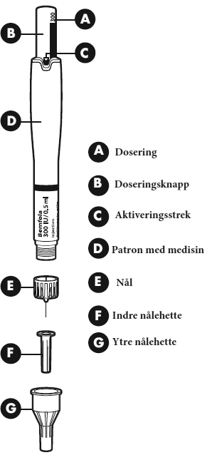 3. Slik gjør du den ferdigfylte pennen din klar til injeksjon De forskjellige delene av den ferdigfylte pennen