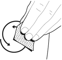 Etter at du har trukket ut nålen: vask huden med spritservietten med en sirkelbevegelse på injeksjonsstedet.
