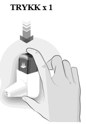 Kontakt legen din og få en ny resept dersom du ikke allerede har en ny Easyhaler-inhalator. Når telleren kommer til 0 (null), må du erstatte Easyhaler-inhalatoren. Dersom du bruker beskyttelsesdeksel, kan du beholde dette, og sette inn din nye inhalator. |