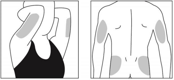 OBS: ikke injiser i et område som er smertefullt eller misfarget eller hvor du kjenner faste knuter eller kuler. Det anbefales å ha en plan for å variere injeksjonssted og føre dagbok over dette. På visse steder av kroppen kan det være vanskelig å komme til for å kunne injisere selv (for eksempel bak på armene).