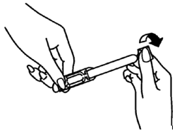 Ta tak i den tykke enden på applikatoren mellom tommel og pekefinger. Rett den tynne enden nedover og rist applikatoren nedover for å sikre at innholdet er ved den smale enden.