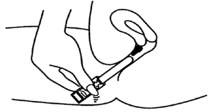 Du bør enten sitte eller ligge med bøyde knær når du skal plassere applikatoren. Den tynne enden av applikatoren skal føres forsiktig inn i vagina.