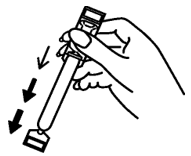 Ta tak i den tykke enden på applikatoren mellom tommel og pekefinger. Rett den tynne enden nedover og rist applikatoren nedover for å sikre at innholdet er ved den smale enden.