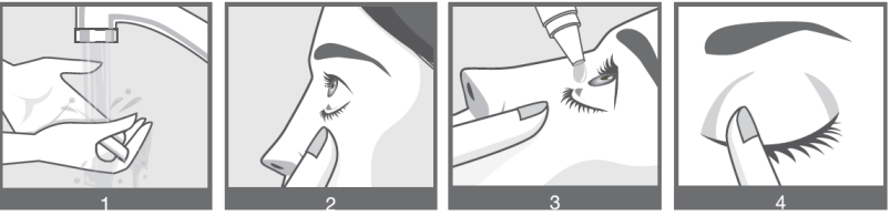Prøv igjen dersom dråpen ikke treffet øyet. Skru flaskekorken godt på igjen rett etter bruk.