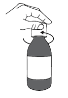 Miksturen må ristes for hånd omtrent 40 ganger, i minst 30 sekunder, ved å snu flasken opp og ned kontinuerlig til miksturen er godt blandet og hele miksturen ser lik ut.