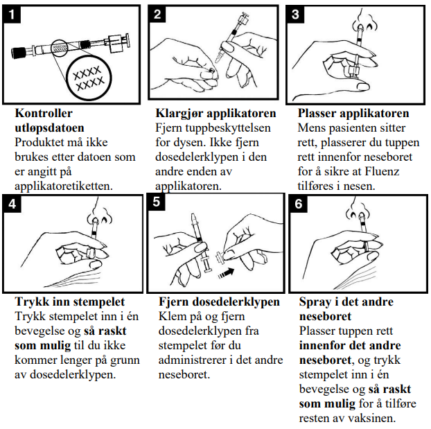 Fluenz er kun til nasal bruk og kun til engangsbruk.