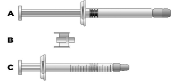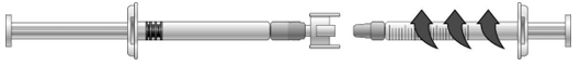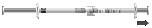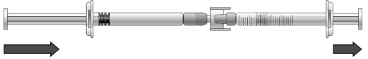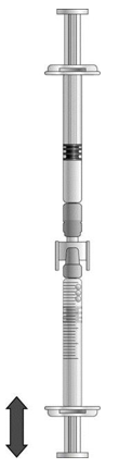 Drei på de sammenkoblede sprøytene, slik at den ferdigfylte sprøyten kommer øverst (se illustrasjonen nedenfor).