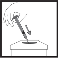 3) Fortsett å presse ned på stemplet til den ferdigfylte sprøyten til nødvendig injeksjonsvolum (dose) er overført til den graderte sprøyten. Se tabell 1 for doseringsinformasjon.