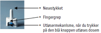 Nesesprayen doseres med en dusj i det ene neseboret. Innholdet i endosebeholderen kan ikke deles.