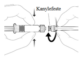 Fest kanylen til sprøyten ved å koble den til luer- lock adapteret og drei en kvart omdreining med klokken til du kjenner at den låses.