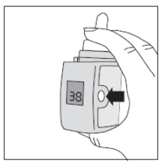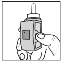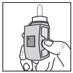 Trykk på og slipp opp igjen den hvite knappen på siden av nesesprayen (det blinkende låsesymbolet forsvinner).