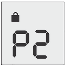6. Hold nesesprayen loddrett og pump nesesprayen ut i luften en gang til. Displayet vil nå vise "P2" og låsesymbolet.