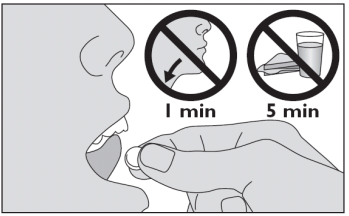 Ikke svelg før det har gått 1 minutt.