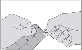 Ikke press legemidlet gjennom folien. Det kan skades fordi det lett går i oppløsning.