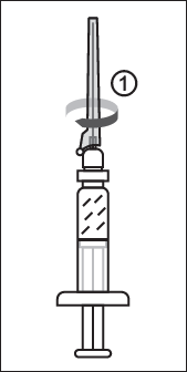 1) Etter at sprøytehetten er fjernet, skal det festes en nål på luerlåsen på sprøyten.
