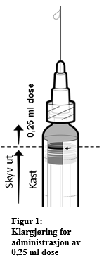 Ved administrasjon av en dose på 0,25 ml hos barn på 2 måneder til < 3 år, følge trinnene nedenfor: