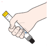 1. Hold Jext-injektor i den hånden du vanligvis bruker (den du bruker til å skrive med), med tommelen nærmest den gule sikkerhetshetten.