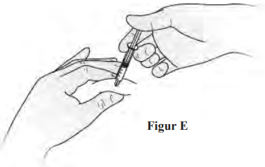 2. Det kan være en liten luftboble i den ferdigfylte sprøyten. Du behøver ikke å fjerne luftboblen før injisering. Det er ikke farlig å injisere oppløsningen med luftboblen.