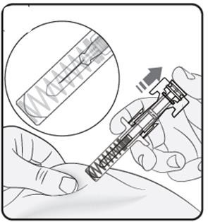 Merk: Dersom du ikke kan trykke ned stempelet etter å ha satt inn kanylen, bruk en ny ferdigfylt sprøyte.