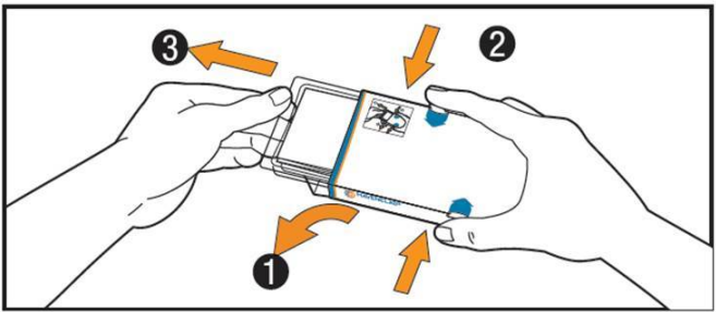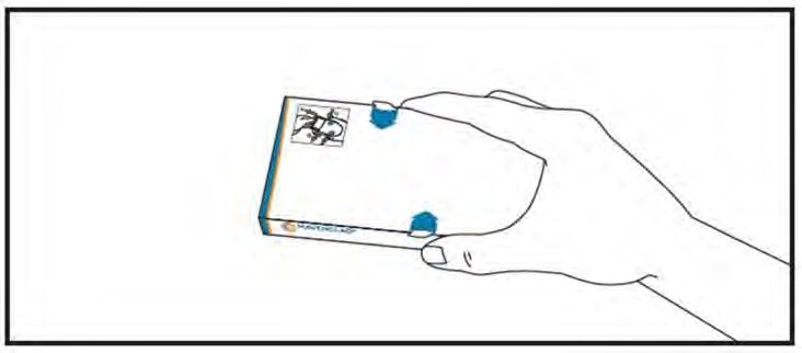 (2) Trykk inn knappene på sidene av esken samtidig med pekefinger og tommel, og hold knappene inne.