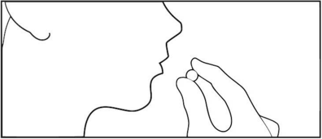 6. Svelg tabletten(e) med vann. Tablettene må svelges hele og ikke tygges eller løses opp i munnen. Hudkontakt bør begrenses. Unngå å røre ved nesen, øynene eller andre deler av kroppen.