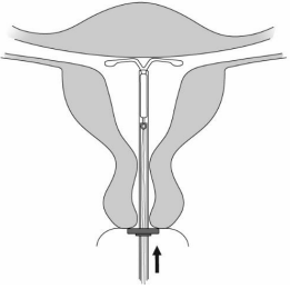 Mirena tas ut ved å trekke forsiktig i trådene med tang (Figur 8).