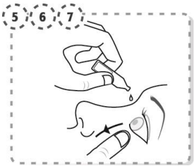 7. Klem forsiktig på endosebeholderen slik at én dråpe kommer inn i øyet. Slipp det nedre øyelokket.