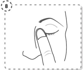 8. Press en finger mot øyekroken ved nesen. Hold i 1 minutt mens du holder øyet lukket.