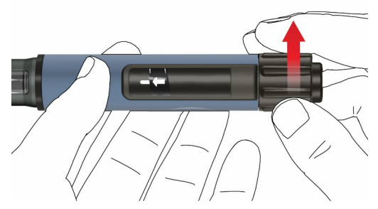 Når injeksjonen er ferdig settes beskyttelseshetten på kanylen og skrus mot klokken for å fjerne kanylen. Dette sikrer at Movymia forblir steril og hindrer lekkasje fra pennen. Det hindrer også at det kommer luft inn i sylinderampullen, samt at kanylen blir tilstoppet.