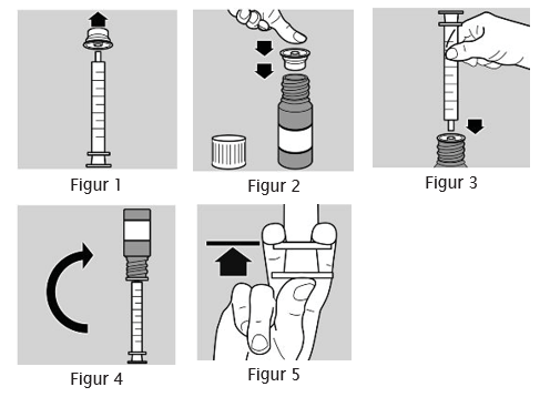 5. Fyll sprøyten med en liten mengde medisin ved å trekke stempelet ned og skyv deretter stempelet opp for å unngå at det dannes bobler- Tilberedelse av dose