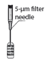 5-µm filter needle = 5-µm filternål, 0.2 ml = 0,2 ml