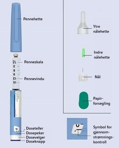 Før du bruker pennen for første gang, vil legen eller sykepleieren vise deg hvordan du bruker pennen.