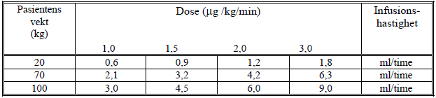 Infusjonshastighet for cisatrakurium 2 mg/ml