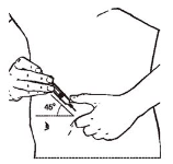 Bestem deg for hvor du skal sette injeksjonen – finn et egnet sted på magen eller på fremsiden av låret. Bytt injeksjonssted for hver gang. Du skal ikke sette injeksjonen på et sted som er ømt, rødt, hovent eller sårt. Hvis legen eller sykepleieren har anbefalt deg å gjøre det, renser du injeksjonsstedet med en spritserviett