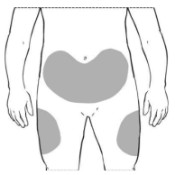 magen, med unntak av området rundt navlen.