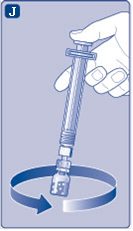 Injeksjon i et CVAD kan kreve bruk av en steril 10 ml plastsprøyte til å trekke opp den rekonstituerte oppløsningen. Dette skal gjøres rett etter trinn J.