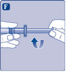 Trekk stempelstangen litt nedover slik at den rekonstituerte oppløsningen dras inn i sprøyten.