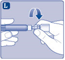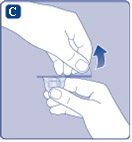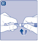 Fjern sprøytehetten fra den ferdigfylte sprøyten ved å bøye den ned til perforeringen brytes.