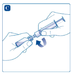Preparatet er nå klart for injisering i en blodåre. Følg injeksjonsprosedyren som legen din har instruert deg i.