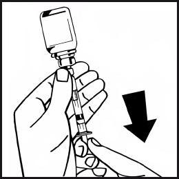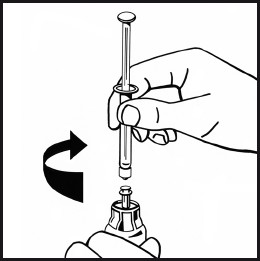 Løs opp pulveret ved å forsiktig bevege eller svinge på hetteglasset noen ganger i sirkulære bevegelser uten å ta ut sprøyten. Må ikke rystes. Vent til alt pulveret er helt oppløst.