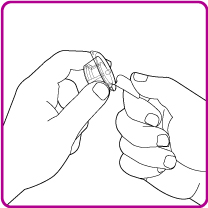 Brekk av inngrepssikringshetten til den ferdigfylte sprøyten med oppløsningsvæske (figur C).