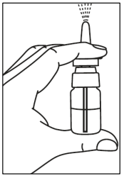 5. Før spissen rett inn i neseboret og spray én gang. Pust normalt gjennom nesen uten å trekke pusten hardt.