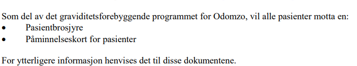 Les de spesifikke instruksjonene du får av legen din, særlig angående effekten til Odomzo på ufødte barn.