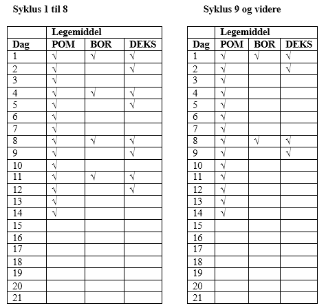 Når Pomalidomide Newbury brukes sammen med bortezomib og deksametason hos personer som har fått minst én annen behandling, kan det forhindre at benmargskreften forverres: