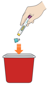 Kast pennen og hetten i en beholder som beskytter mot stikkskader (f.eks. en kanylebøtte) med en gang etter bruk.